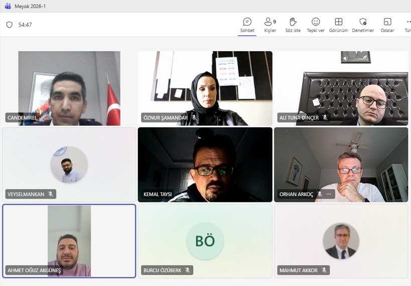 Kırklareli Üniversitesi Meslek Yüksekokulları Kurulu (MEYOK), 21 Ocak 2026 tarihinde saat 15.00' da MEYOK Koordinatörü Dr. Öğr. Üyesi Can DEMİREL’in başkanlığında; Teknik Bilimler Meslek Yüksekokulu Müdürü Prof. Dr. Orhan ARKOÇ, Sosyal Bilimler Meslek Yüksekokulu Müdürü Prof. Dr. Mahmut AKKOR, Vize Meslek Yüksekokulu Müdür V. Doç. Dr. Ahmet Oğuz AKGÜNEŞ, Sağlık Hizmetleri Meslek Yüksekokulu Müdür V. Dr. Öğr. Üyesi Burcu ÖZÜBERK, Babaeski Meslek Yüksekokulu Müdür V. Dr. Öğr. Üyesi Kemal TAYSI, Lüleburgaz Meslek Yüksekokulu Müdür Yardımcısı Öğr. Gör. Ali Tuna DİNÇER, Vize Meslek Yüksekokulu Müdür Yardımcısı Öğr. Gör. Dr. Veysel MANKAN ve Babaeski Meslek Yüksekokulu Müdür Yardımcısı Öğr. Gör. Öznur Şamandar YILMAZ' ın katılımlarıyla çevrimiçi olarak gerçekleştirilmiştir.